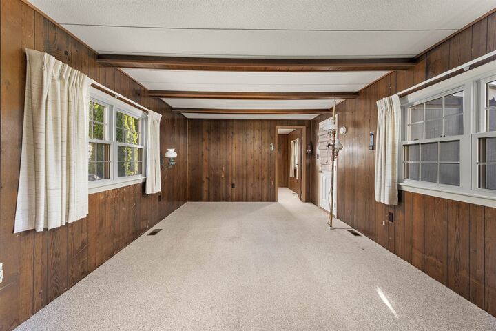 Inside, you’ll find a cozy and functional layout with a bright living area, an eat-in kitchen, sunroom and two well-sized bedrooms. The open floor plan creates a welcoming atmosphere, ideal for everyday living or entertaining.